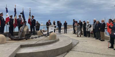 Cérémonie à l’initiative de Christian PIERROT (Président de l’amicale des anciens marins) avec la présence de Stephan ROSSIGNOL (Maire de La GRANDE MOTTE) et de la SNSM.