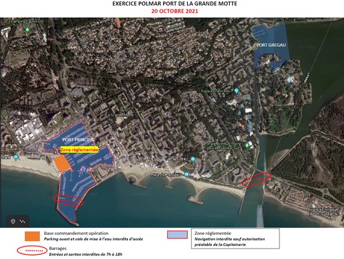 • Le mercredi 20 octobre : le Port de la Grande Motte sera fermé à la navigation (tout déplacement intra portuaire, comme un mouvement vers l’aire de carénage, devra faire l’objet d’une demande d’autorisation transmise par VHF ou téléphone en Capitainerie au préalable),